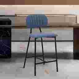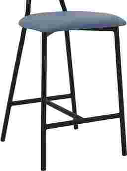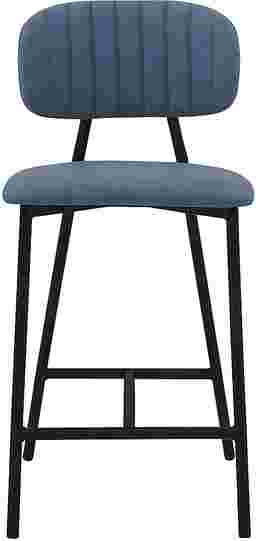 In need of a refined seating option for your kitchen area The modern look of leather and metal counter stool can be just that. The plush look of leather blue upholstery is accompanied by the sleek and simplistic black metal frame. Not only is this stool pleasing to look at, but it also features high-quality materials that will ensure this product gives you years of enjoyment. The incorporated square footrest is an extra feature added to give you maximum comfort. The Rennelo's legs are tipped with rubber caps to prevent sliding on or scratching your floors to prevent everyday wear and tear. The Rennelo is capable of blending into any style of home. Customer assembly is required.