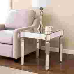 Choose fabulously. This antique mirrored Renville end table brings a glimpse of old Hollywood sophistication home. Wavy, beveled edges create dramatic dimension from the spacious mirrored tabletop down the tapered legs. Reflect light from the living room to the reading nook with this oh so chic side table. Customer assembly required.