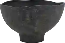 Crafted from earthenware, this Rezida bowl has a unique, organic shape with a subtly waved rim. Its matte black finish features a rich, rustic texture, giving it a sophisticated, artisanal feel that adds natural character to any space. Safe for outdoor use, but protection from freezing temperatures is recommended.