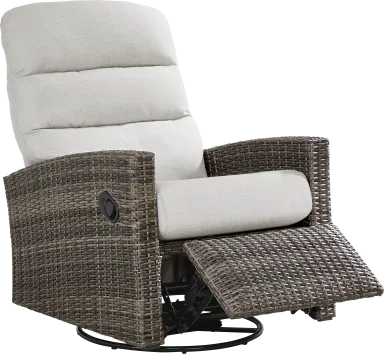 Ria Driftwood 3 Pc Outdoor Reclining Sectional With Gray Cushions
