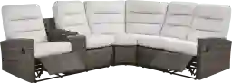 Casual outdoor style finds a new angle in the arcing curves and gentle lines of the Ria reclining sectional. With an all-weather aluminum frame wrapped in driftwood colored wicker, this unique seating piece offers pull-handle reclining on left arm and right-arm facing seats. A padded console adds convenient storage and two cupholders. The backs and seats are fully upholstered in a UV-resistant gray outdoor fabric with chambered cushions for added support.
