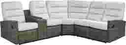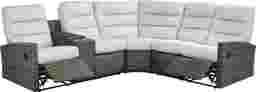 Casual outdoor style finds a new angle in the arcing curves and gentle lines of the Ria reclining sectional. With an all-weather aluminum frame wrapped in driftwood colored wicker, this unique seating piece offers pull-handle reclining on left arm and right-arm facing seats. A padded console adds convenient storage and two cupholders. The backs and seats are fully upholstered in a UV-resistant gray outdoor fabric with chambered cushions for added support.