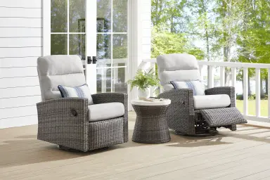 This 3-piece seating piece brings high-end indoor comfort outside. It features pull-handle reclining on both the left-arm and right-arm facing seats, allowing for easy manual adjustment. The movement is enhanced by gliding functionality, and the center padded console provides integrated storage and two cupholders, keeping your outdoor essentials organized and within reach.