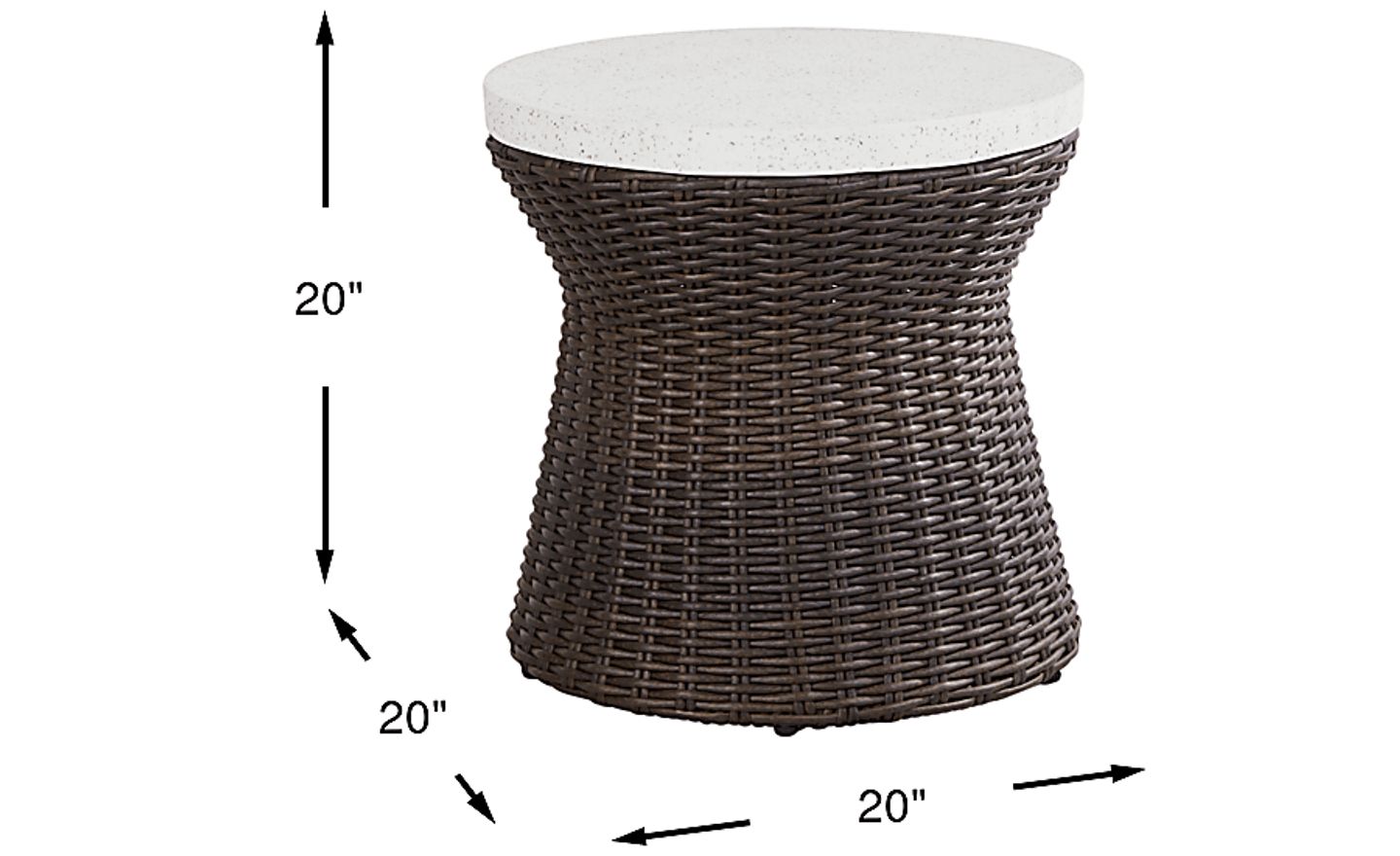 Casual outdoor style finds a new angle in the arcing curves and gentle lines of the Ria end table. With an all-weather aluminum frame wrapped in espresso wicker, its terrazzo pattern tabletop is ideal for decor, drinks, and anything else you need at hand outdoors.