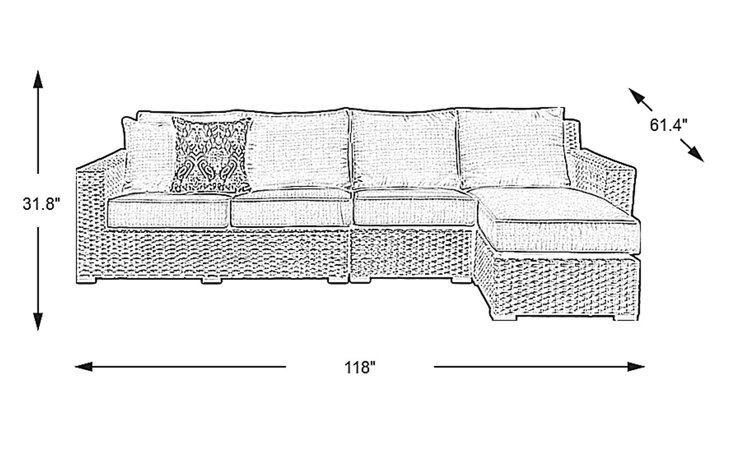 118.00"w x 62.00"d x 32.00"h