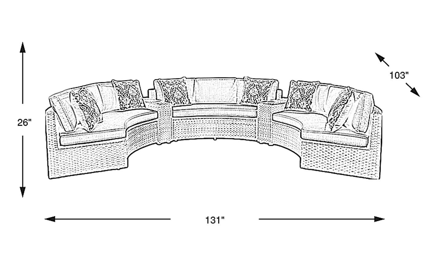 131.00"w x 103.00"d x 26.00"h
