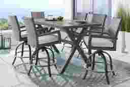 Rialto Brown 7 Pc Rectangle Outdoor Bar Height Dining Set With Putty Cushions