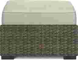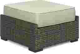 Complete you relaxing outdoor ensemble with the cozy Rialto ottoman. It offers the ideal companion for its matching chair thanks to a comfortable putty colored cushion covered with durable solution-dyed performance fabric. The base is made with brown all-weather wicker over a fully-welded aluminum frame.