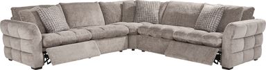 Filling space with deeply comforting warmth and joy, the Richland sectional makes every game, episode, and carefree moment feel like home. A unique upholstery design in dove gray microfiber highlights the plush curves of each feather-blend cushion in this transitional sectional. Adding an irresistible call to relaxation from every angle, the seats, arms and backs feature pillowy biscuit tufting. Power reclining offers even more indulgence, with adjustable footrests and control panels hidden away for a clean, streamlined look. Upholstery: 100% Polyester.