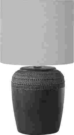 Refresh your living room, bedroom, or home office with the Ridgebit Black Lamp. The elegant, jar shaped black base with a textured finish along the top is paired with a grey fabric shade for a contemporary upgrade. This lighting accent is ready to brighten any corner of your home, whether placed on an end or side table in a living room, on your bedroom nightstand, or your office desk, providing just the right amount of light to create the right ambiance. Embrace the classic styling of this ceramic table lamp with a modern drum shade for a fashionable and on-trend accent piece that compliments all decors. Partial assembly may be required.