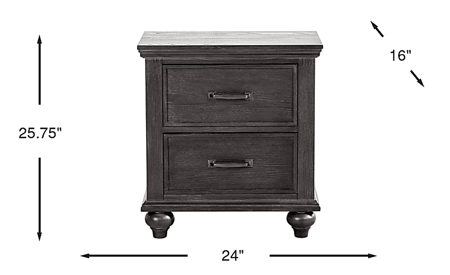 Take the long way home and tuck in with the Ridgefield collection's abundance of tranquility. An inviting fusion of casual and traditional influences have been poured into this piece's simple and stylish appearance with ebony tone finish that gives the oak veneers a serene sheen. From the crown moulding paneling to the turned bun feet, top to bottom beautiful artisanship is on full display. Both drawers feature English and French dovetailing with soft-close extension drawer glides.