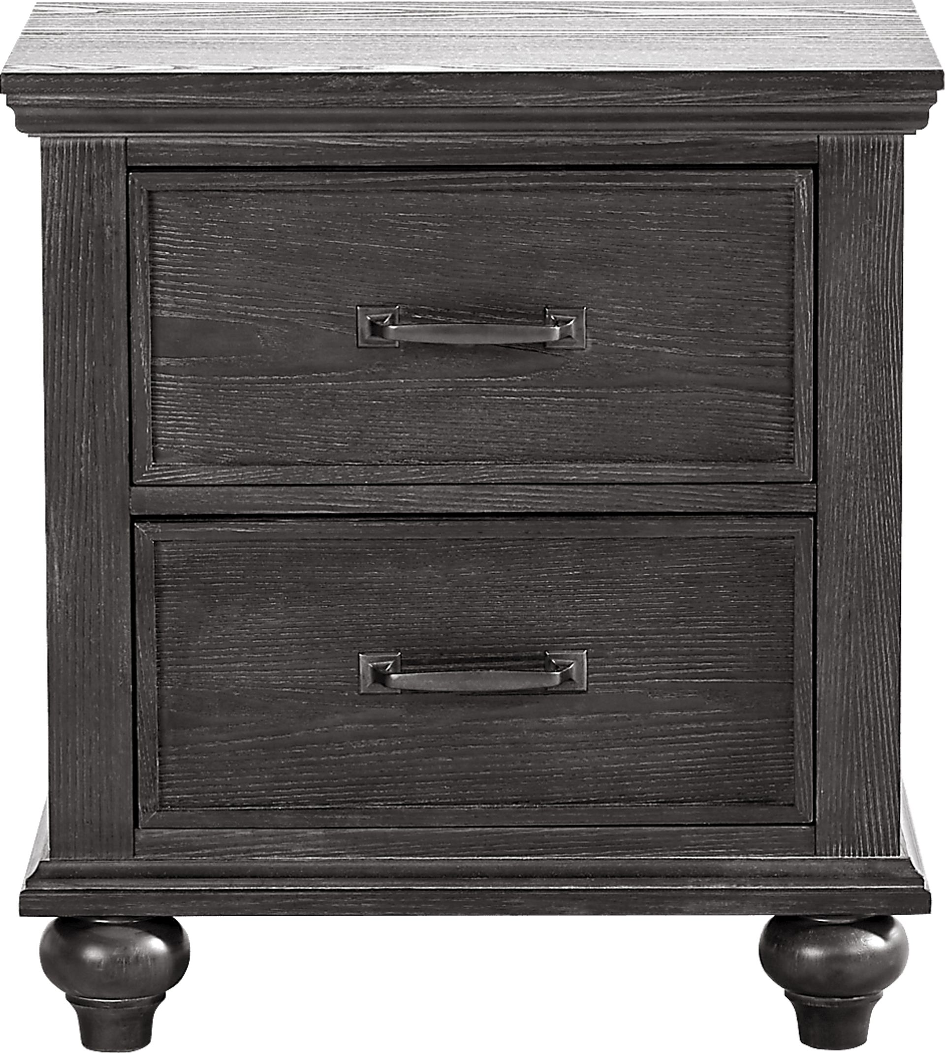 This nightstand features a "transitional" aesthetic that bridges the gap between styles. The sleek ebony finish and black hardware provide a sharp, contemporary look, while the crown moulding and turned bun feet offer a nod to traditional craftsmanship. This versatility allows it to serve as a grounding element in a minimalist modern room or as a sophisticated update to a more classic bedroom suite.