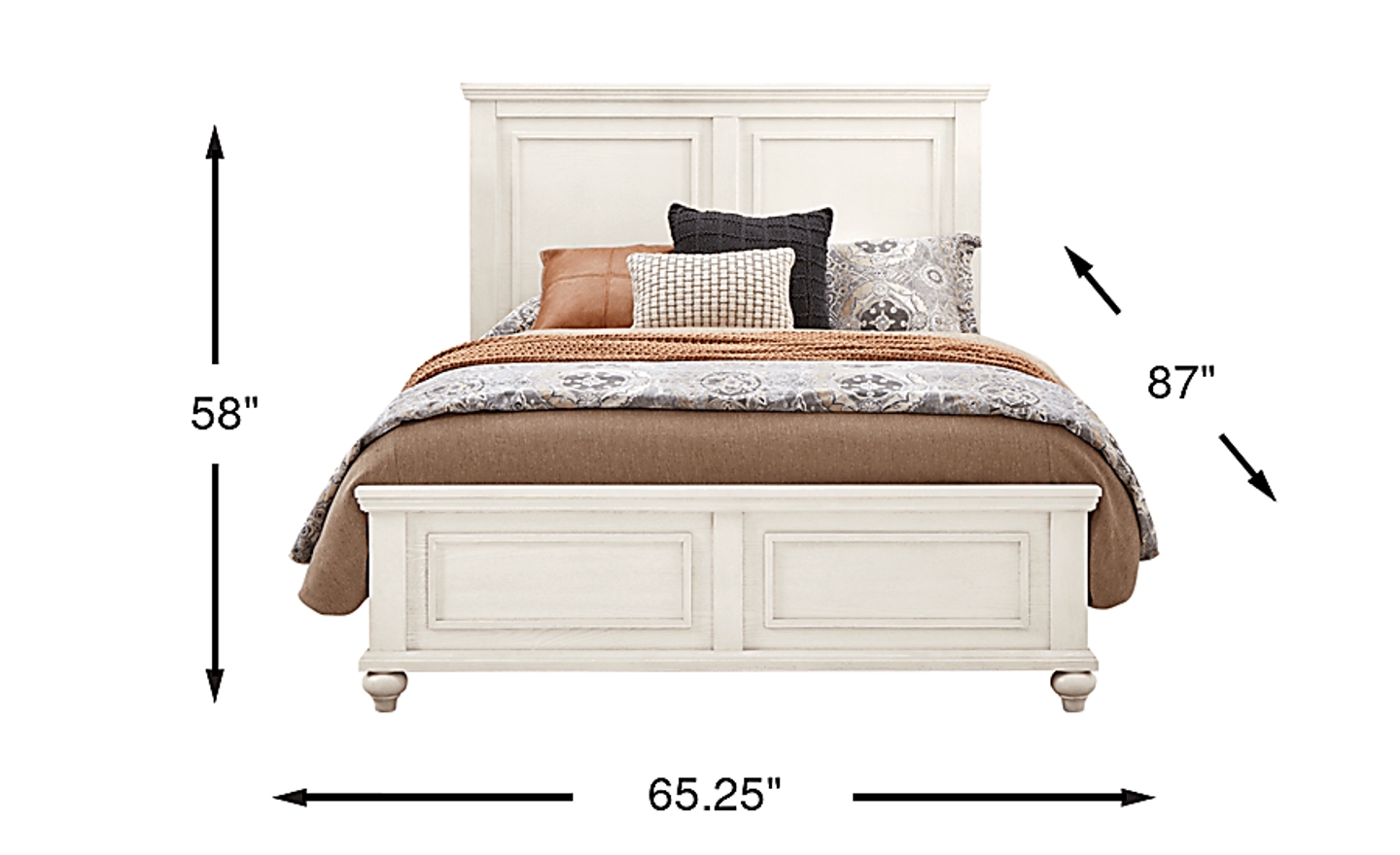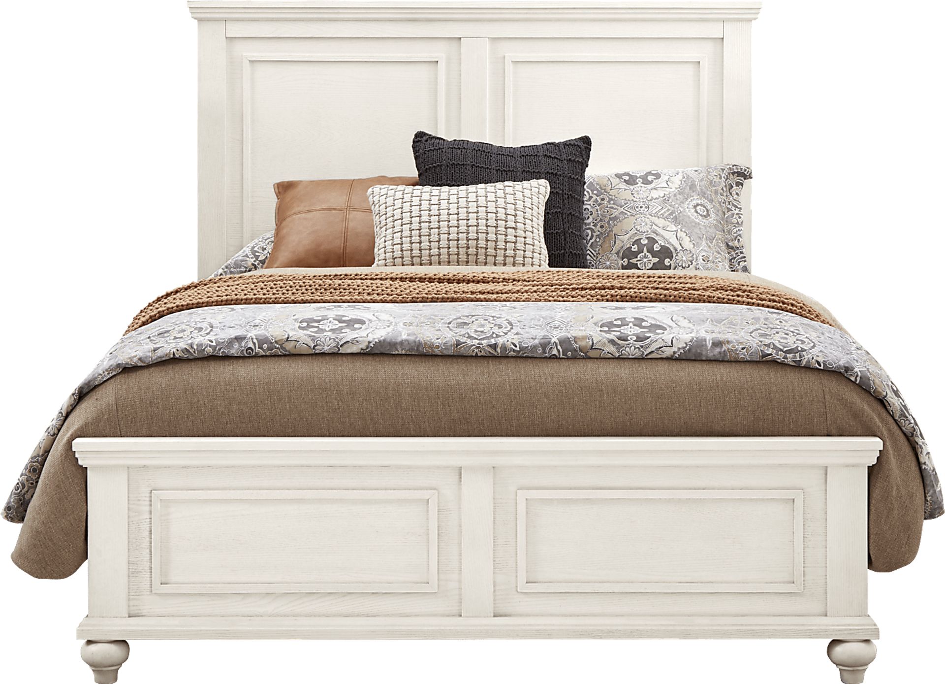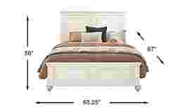 Take the long way home and tuck in with the Ridgefield bed's abundance of tranquility. An inviting fusion of casual and traditional influences have been poured into this bed's simple yet stylish appearance with a headboard that features top and bottom crown moulding details alongside eye catching panels. That same design is carried over onto the footboard with turned bun feet that punch up the style. White tone finish gives the oak veneers a serene final sheen. Mattress and foundation (if required) sold separately.