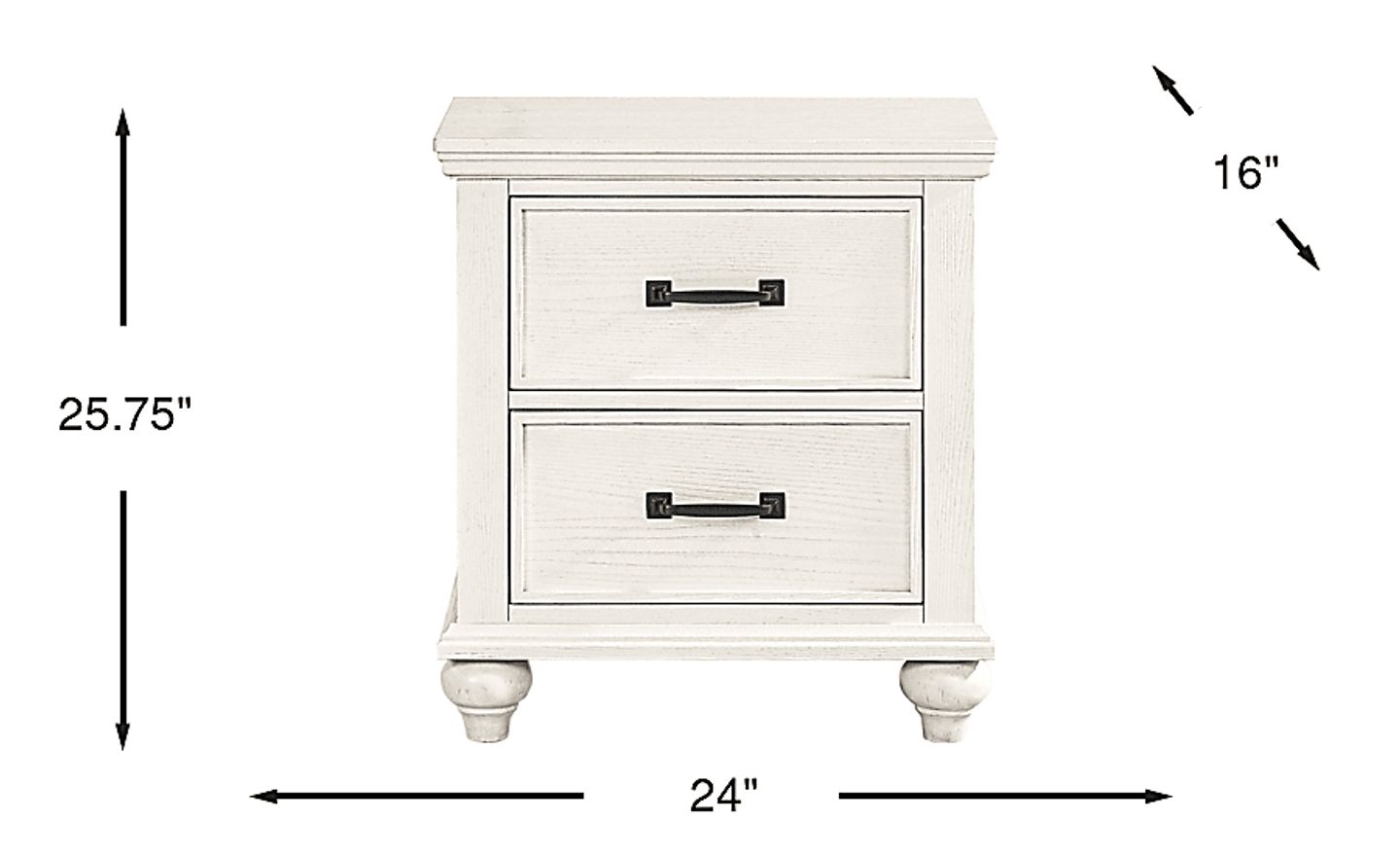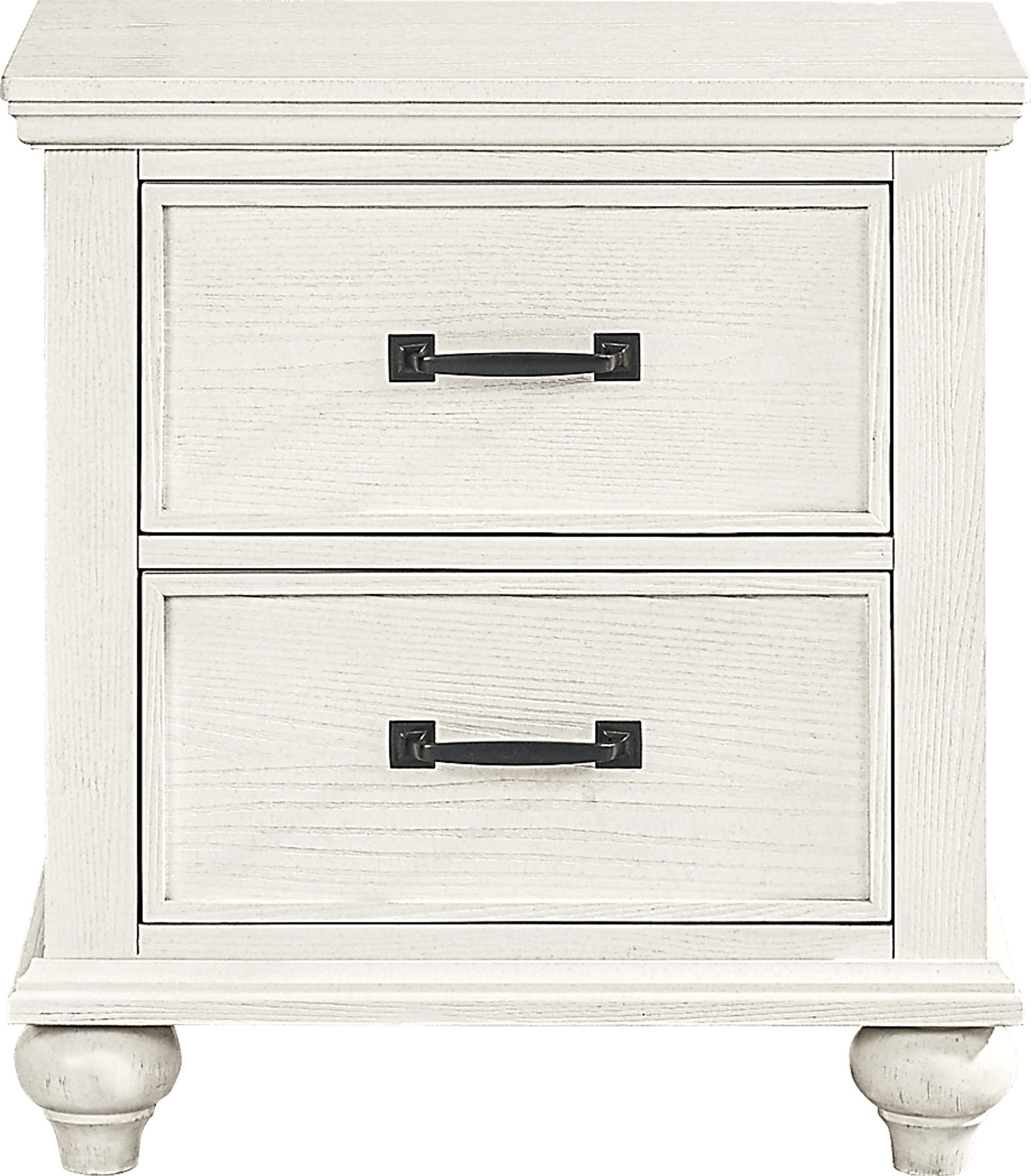 Take the long way home and tuck in with the Ridgefield collection's abundance of tranquility. An inviting fusion of casual and traditional influences have been poured into this piece's simple and stylish appearance with white tone finish that gives the oak veneers a serene sheen. From the crown moulding paneling to the turned bun feet, top to bottom beautiful artisanship is on full display. Both drawers feature English and French dovetailing with soft-close extension drawer glides.
