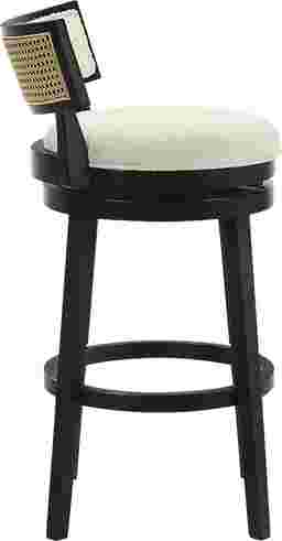 The Ridgemark barstool combines soft texture, clean geometry, and everyday versatility to elevate any dining or entertaining space. Its contemporary silhouette, defined by a low curved backrest and plush white boucle upholstery, brings a warm yet sophisticated presence to the room. A round cushioned seat paired with a smooth 360-degree swivel base ensures comfort and ease of movement. Crafted from durable solid natural wood, the frame offers lasting strength and a smooth finish that complements the performance fabric. The boucle's subtle weave adds gentle visual depth, creating a luxurious but understated textural balance. Designed for real-world use, the stool maintains its fresh appearance over time, and customer assembly is required.