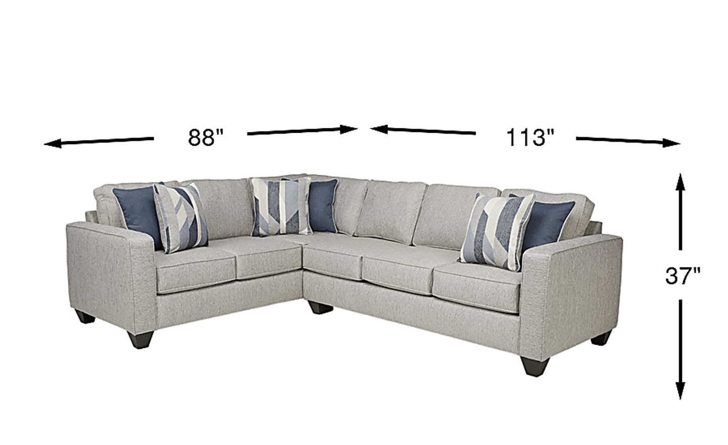 Entertain guests or relax with family in supreme style with the Ridgewater sectional. This piece features sleek track arms, clean welted seams and block legs for a tailored aesthetic, giving this sofa a refined look with casual appeal. Upholstered in a textured fabric with a light gray color and big enough to seat up to six adults, it creates the perfect cozy retreat for an afternoon inside. Decorative chenille pillows add a splash of color in solid and geometric patterns. 100% Polyester