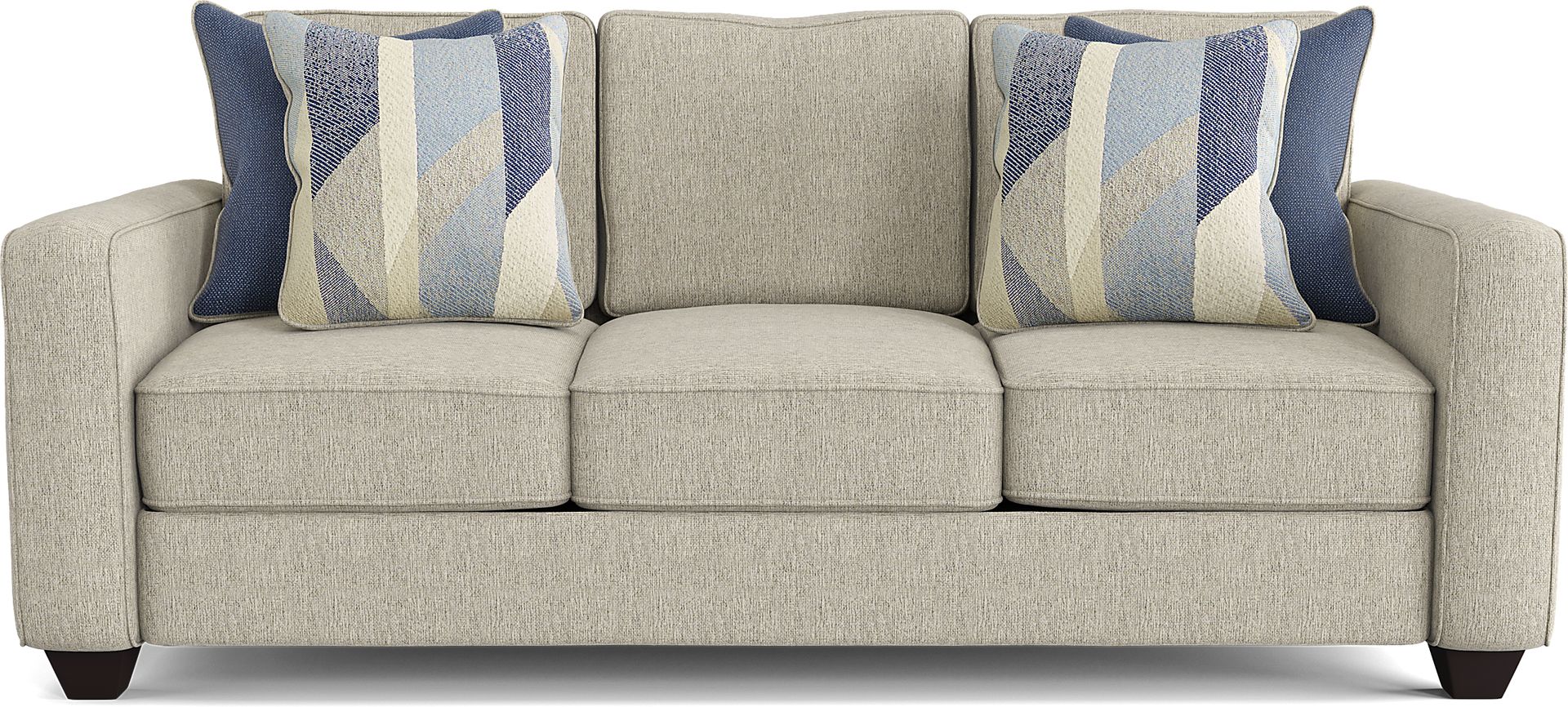 The Ridgewater sofa is the perfect place to relax with family or entertain guests during a get-together. Upholstered in a textured fabric in a light gray color, it creates the perfect cozy retreat for an afternoon inside. Sleek track arms, clean welted seams, and block legs all add to the tailored aesthetic, giving this sofa a refined look with casual appeal. Convenient for an overnight guest, simply unfold the royale mattress, which provides comfort and support to relieve pressure points. Decorative chenille pillows add a splash of color in solid and geometric patterns. 100% woven polyester.