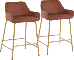 This set of two stools requires customer assembly. The process is straightforward and involves securing the upholstered seat and backrest to the unique metal frame. We provide all necessary hardware and clear instructions to ensure the stools are properly leveled and sturdy, providing a stable seating solution for your kitchen area.