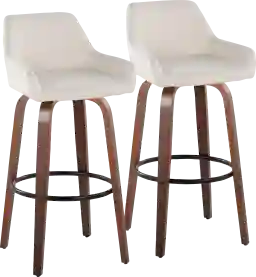 The legs utilize a bent wood construction, a hallmark of contemporary design that offers both a sleek, curved aesthetic and structural integrity. The dark walnut finish adds a touch of mid-century modern sophistication that pairs beautifully with the cream upholstery, making it easy to coordinate with dark-toned cabinetry or walnut flooring.