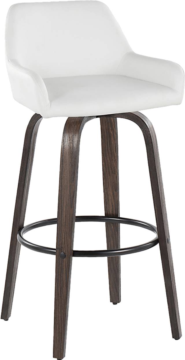 Add stylish and comfortable seating to your kitchen or bar area with the contemporary charm of the Rimcrest VII fixed-height barstool. Featuring a sleek upholstered swivel seat, padded backrest, and stylish bent wood legs, this stool is sure to catch eyes. Customer assembly is required.
