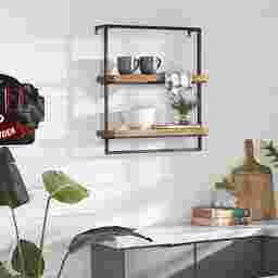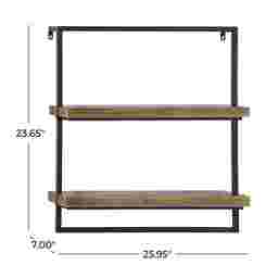 Designed with rugged charm and edgy allure, this urban aesthetic showcases your artistic expression. The Rinoa wall shelf is crafted from fir wood, MDF, and iron, providing a blend of rustic charm and industrial durability. It boasts an oiled brown wood finish and sleek black metal frame, offering a stylish and modern look, perfect for displaying small items within its robust metal frame.