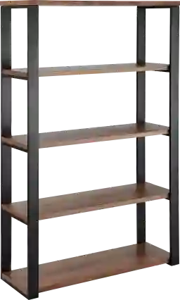 The Rippondon brown bookcase fulfills all your workspace needs. The shelving unit has a strong steel frame and five sturdy shelves in a beautiful American walnut veneer. Customer assembly is required.
