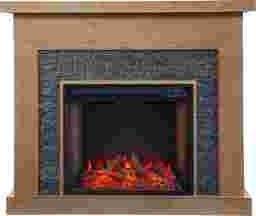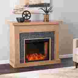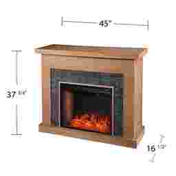 Warm up your farmhouse style with this freestanding smart fireplace. Natural wood finish crafts a sleek, modern look, while the gray faux stone adds an organic feel to your living room or den. Glowing faux fire logs add ambiance with flickering LED flames and lifelike embers, while voice-enabled technology allows for seamless control from anywhere in the room. Enhance your rustic decor with this cozy electric fireplace as the focal point in your small space or open concept floorplan. Customer assembly required.