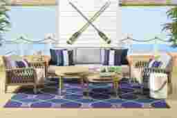 Riva Blonde 5 Pc Outdoor Seating Set with Dove Cushions