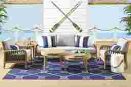 Riva Blonde 5 Pc Outdoor Seating Set With Slate Cushions