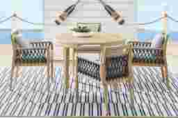 Riva Blonde 5 Pc Round Outdoor Dining Set With Slate Cushions