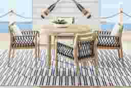 Riva Blonde 5 Pc Round Outdoor Dining Set with White Cushions