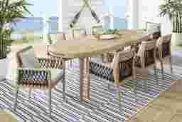 Riva Blonde 7 Pc Large Oval Outdoor Dining Set With Dove Cushions