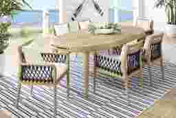 Riva Blonde 7 Pc Oval Outdoor Dining Set with White Cushions