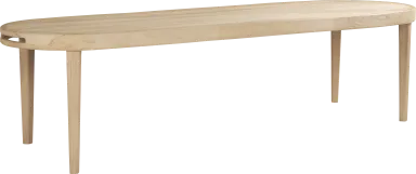 The good life is on deck with the chic and playful style of the large Riva outdoor oval dining table. This stunning piece features a frame crafted of solid teak in a blonde finish, with gently sloped sides and handsome oval knock-outs. A long 110" x 43" slatted top and tapered legs complete the look.