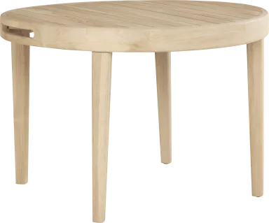 Teak is a natural material that evolves beautifully with age. If left in its natural state and exposed to the sun and rain, the blonde finish will eventually transition into a graceful, silvery-gray patina. To maintain the original light wood appearance, our care guides recommend regular cleaning with wood-specific solutions and occasional seasonal oiling to replenish the wood's natural luster.