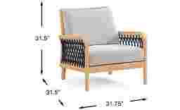 With a footprint of 31.75"w x 31.50"d, this chair offers deep-seated lounge comfort while remaining scaled for smaller outdoor spaces. The track arm and straight-leg design create a streamlined, modern silhouette, while the open-frame lattice of marine rope adds a breezy, nautical feel that helps maintain a sense of openness on a compact balcony or patio.