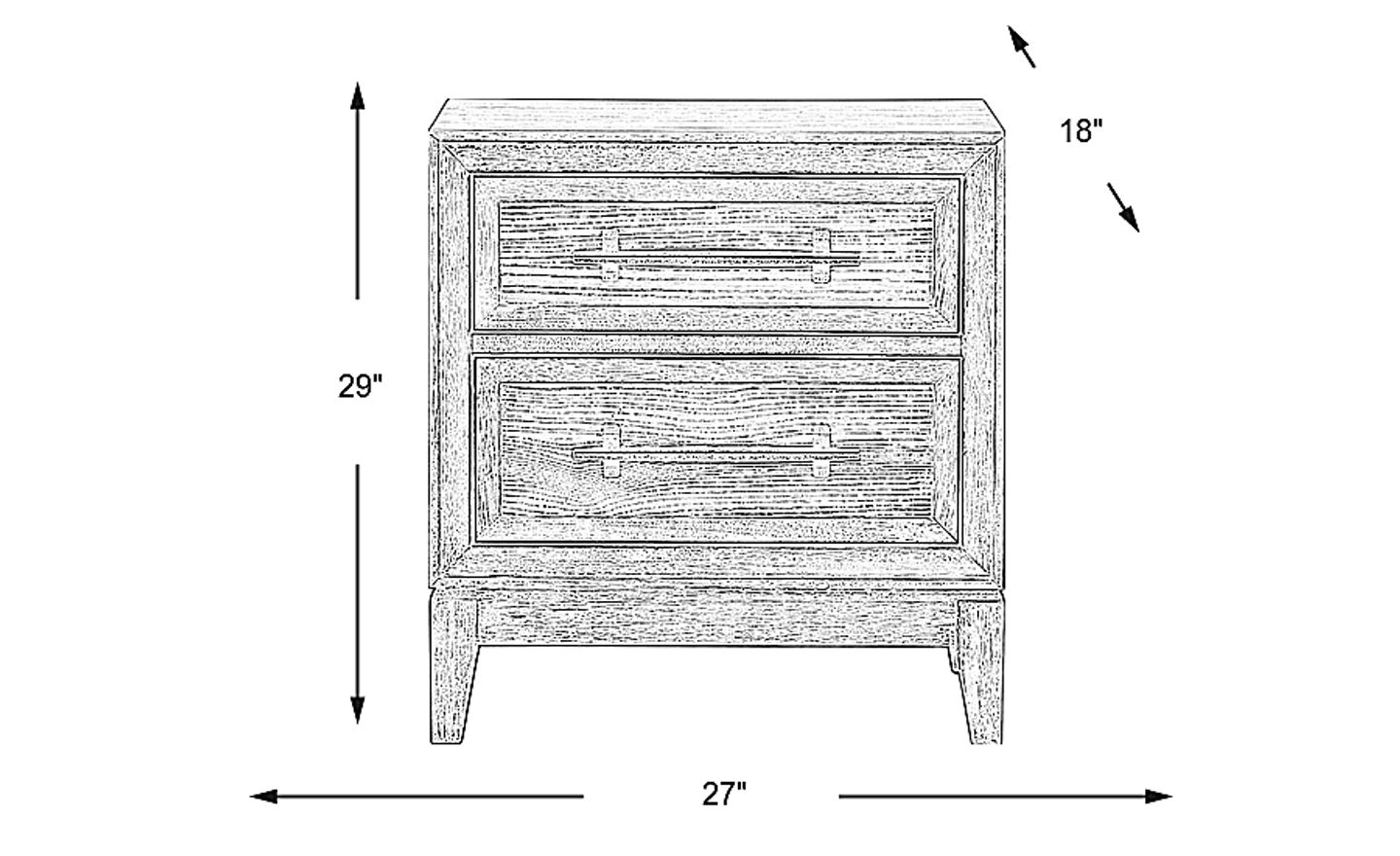 Yes, this piece is well-proportioned for city living. With a width of 27 inches, it provides a generous surface and two deep drawers for bedside organization while maintaining a slim 18-inch depth. This makes it a great choice for urban bedrooms where maximizing floor space and storage is a priority.