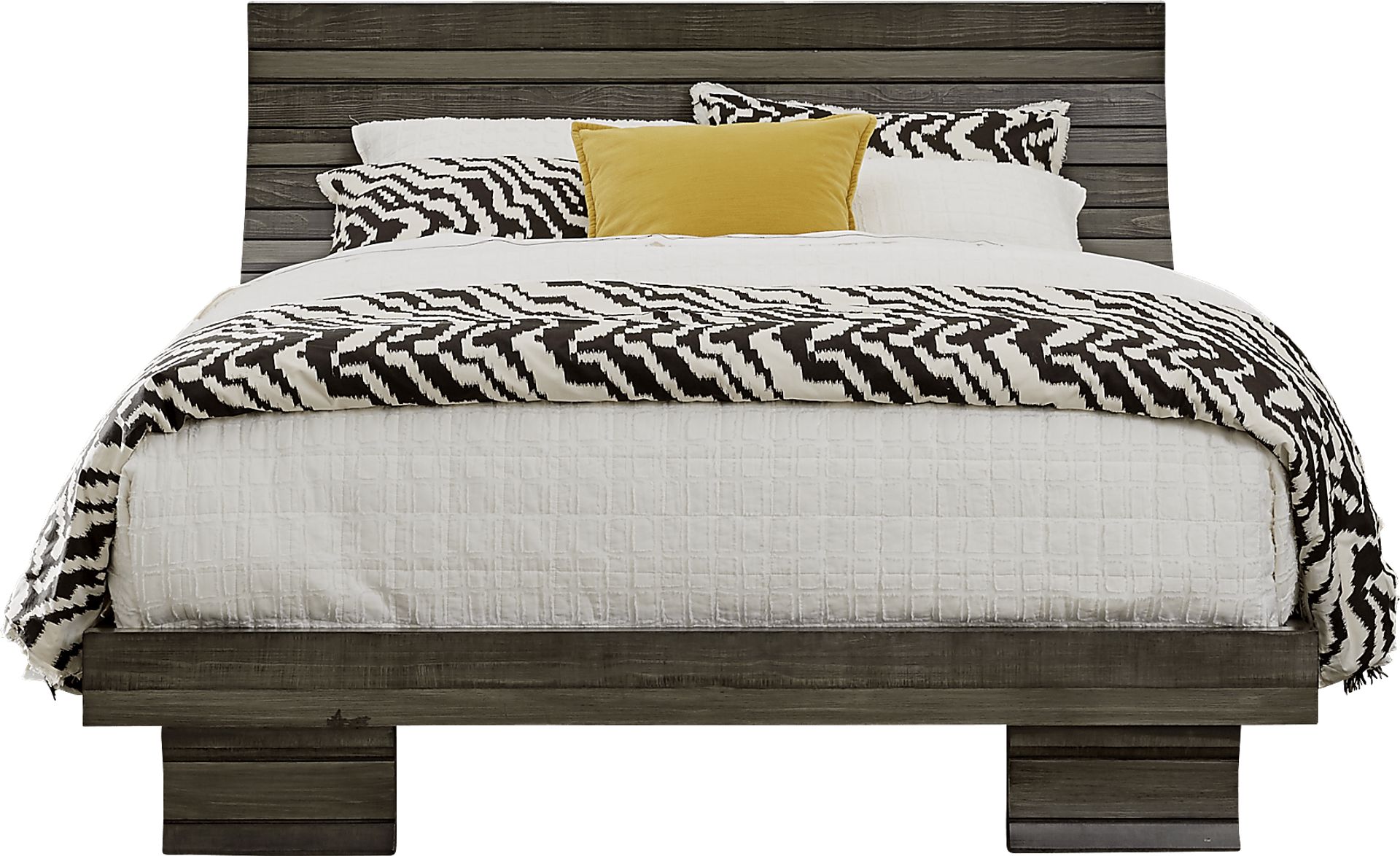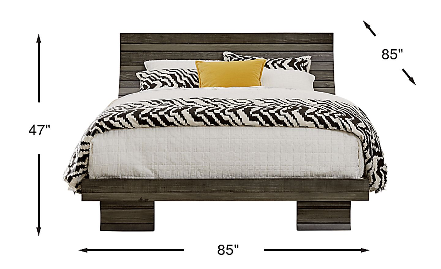 Center your bedroom space with the modern design and elevated profile of the River Street bed. Crafted of 100% solid pine wood and finished with a versatile graphite hue, this piece boasts the striking feature of a concave headboard with a shutter effect, allowing you to wind down in contemporary style. Mattress and foundation (if required) sold separately. Bed shown is queen size.