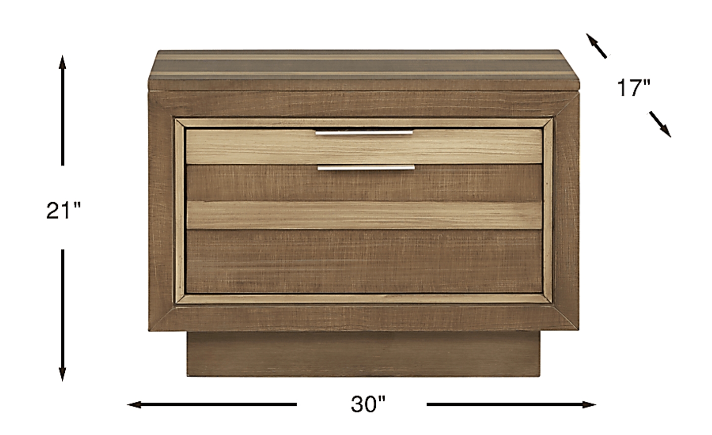 Very nice compliment to entire River Street graphite bedroom set Nightstands much larger than standard size which I really like. Top drawer in both pull out slender drawer with but in compartments to place jewelry cell phone remote and other small articles you might not want to leave on top. Second drawer both long and deep. Great nightstands for me and completed my whole bedroom.