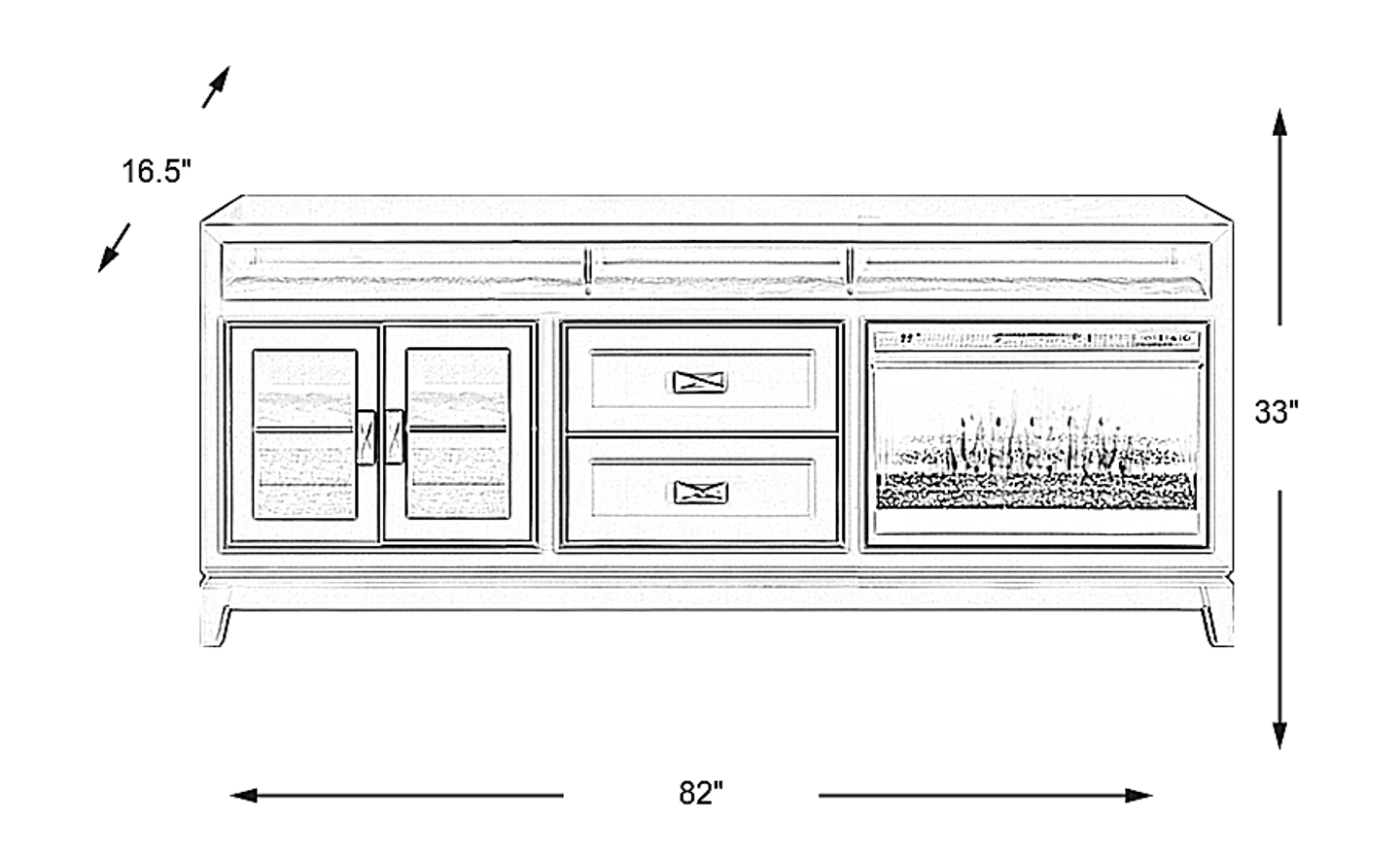 82"w x 16.5"d x 33"h