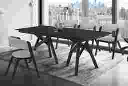 The Rivercast black armchair, set of 2 feature a rounded back that lends themselves to the mid-century modern theme. The frame is made of strong rubberwood and complimented well by the upholstered back and seat. Customer assembly is required.