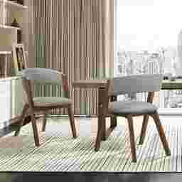 The Rivercast brown armchair, set of 2 feature a rounded back that lends themselves to the mid-century modern theme. The frame is made of strong rubberwood and complimented well by the upholstered back and seat. Customer assembly is required.