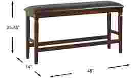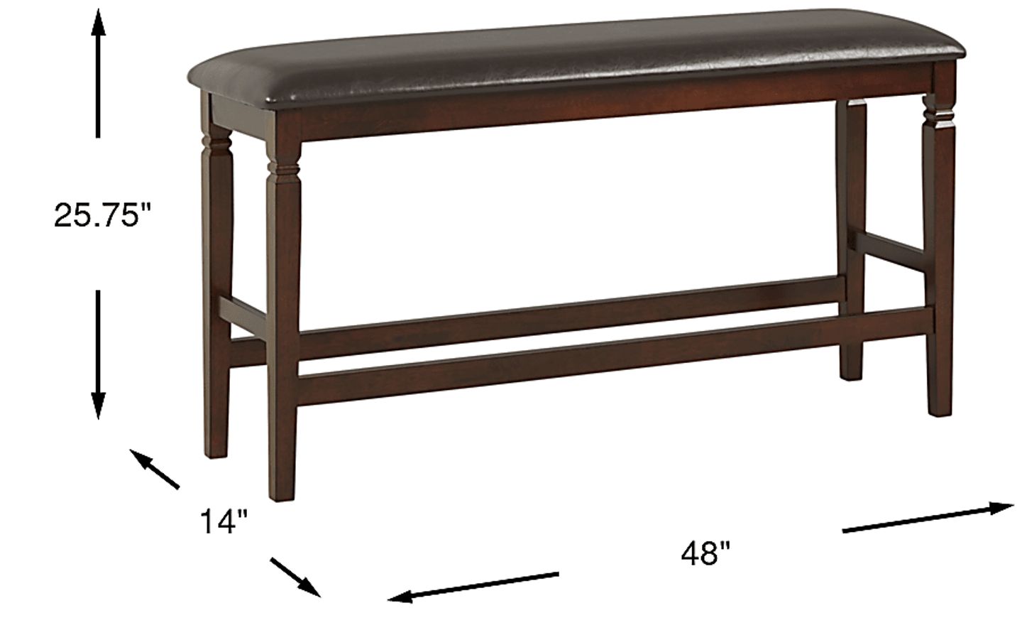 The Riverdale counter height bench offers a change of pace from typical table-side seating. This casual bench offers a place for two with a comfortable padded UltraHyde seat supported by tapered wooden legs and stretchers in a dark cherry finish.