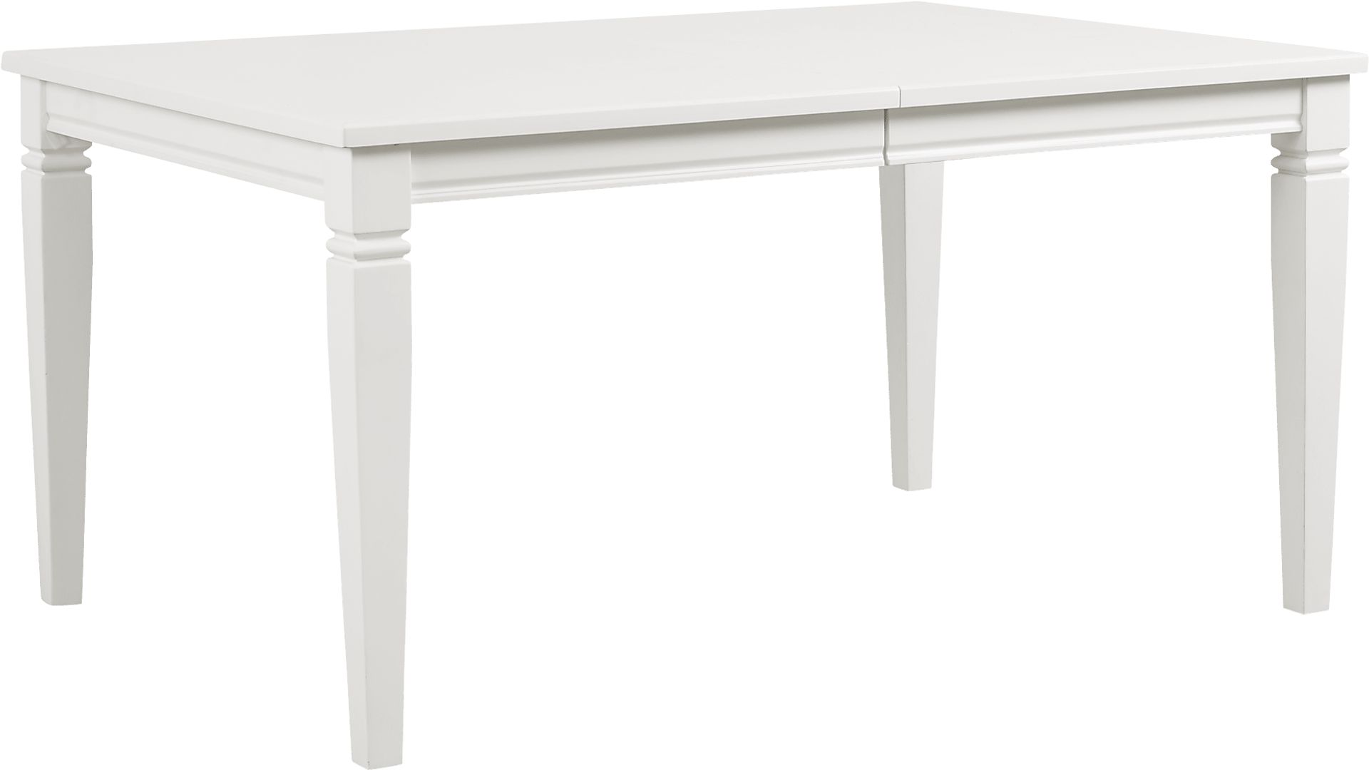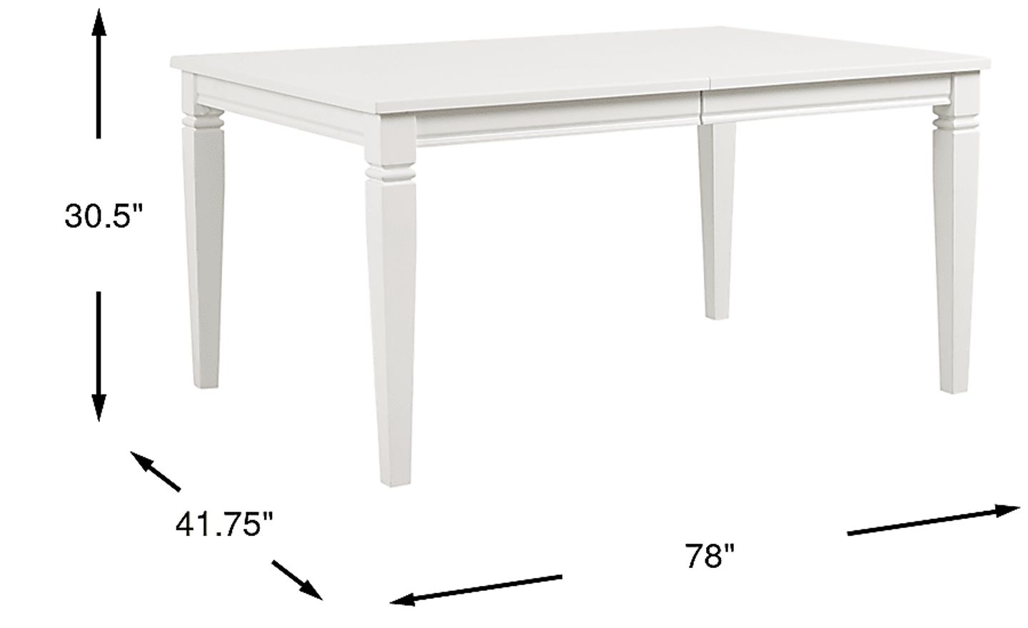 The Riverdale dining table offers the perfect place to gather family and friends for special meals and conversations. If more room is needed for extra guests, this 42 x 60 table easily extends to 78 inches with the included 18 inch leaf. Supported by tapered legs, the table is made with wood solids and cherry veneers in a fresh white finish.