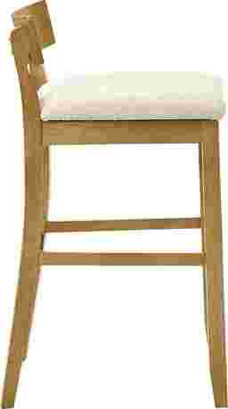 The Riverstar barstool is a study in simplicity, refinement, and comfort the perfect balance between timeless design and modern practicality. With its low-profile backrest, armless silhouette, and softly padded seat, Riverstar offers a sleek, space-saving design that complements a variety of interior styles. Its form is subtle yet sophisticated, designed to blend seamlessly into both modern and transitional spaces such as kitchen islands, breakfast bars, or casual dining counters. Crafted with attention to both comfort and aesthetics, the Riverstar stool features a slightly curved backrest that supports natural posture while maintaining an open, airy appearance. The armless structure provides freedom of movement and easy tucking under counters for a clean, uncluttered look. Its white boucle performance fabric upholstery adds inviting texture and a soft, cloud-like feel, contrasting beautifully with the warmth of the wood tones. Generous foam padding ensures long-lasting comfort whether