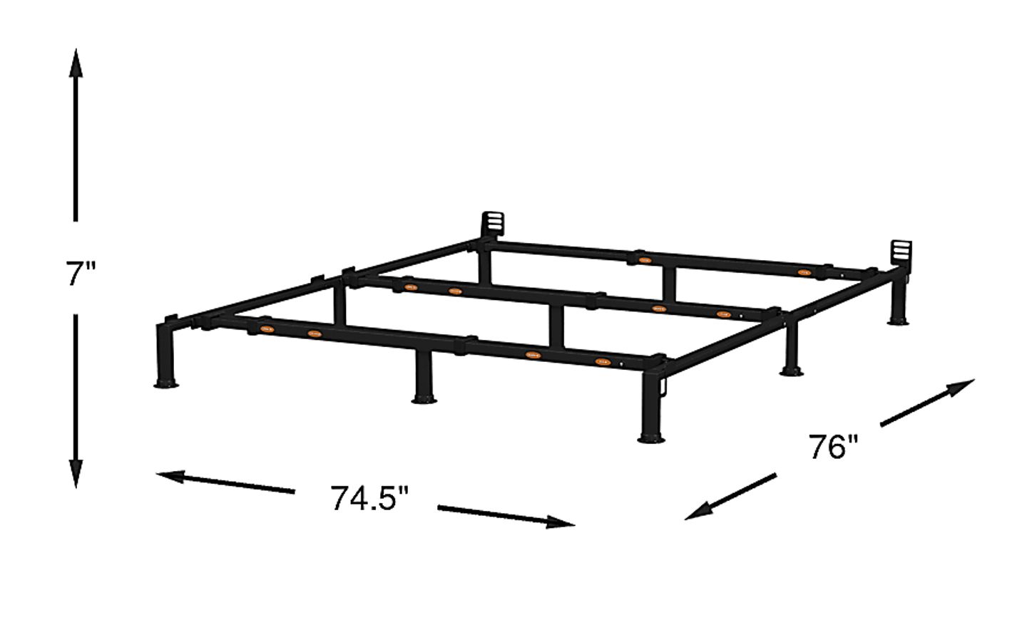 A versatile bed frame that seamlessly expands from a Twin to a California King size with convenient snap buttons.Slotted design allows you to attach a headboard.Built to handle the demands of everyday use with its strong steel construction and a remarkable weight capacity of up to 2,000 lbs.Nine steel legs for ultimate stability.Easy, tool-free setup.Compact packaging for easy handling