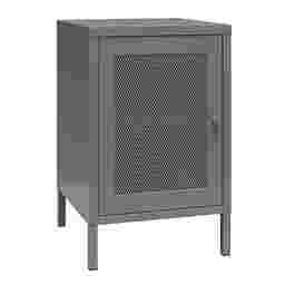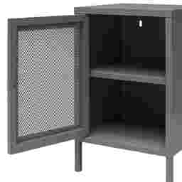 Give your living space an industrial feel with the Roaris Side Table with a perforated metal mesh door. Crafted with durable powder-coated metal, this side table brings a contemporary touch to your room in a soothing neutral painted finish. Use in your livingroom, bedroom, or anywhere that you can use a little extra storage.
