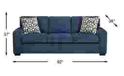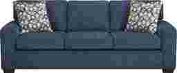 Everyone finds their favorite spot to unwind, and the charm of the Robertson collection meets those soft exhales with warmth and quiet refinement. Contemporary in style, this sofa is wrapped in cozy blue chenille for a soft feel and a rich, inviting tone. Gently rounded track arms and pillowy cushions create sink-in comfort without losing its tailored shape. Accent pillows showcase a textured pattern, adding contrast and visual intrigue. Warm brown block legs subtly taper to ground the look, making it a natural fit for everyday lounging. Upholstery: 100% polyester.
