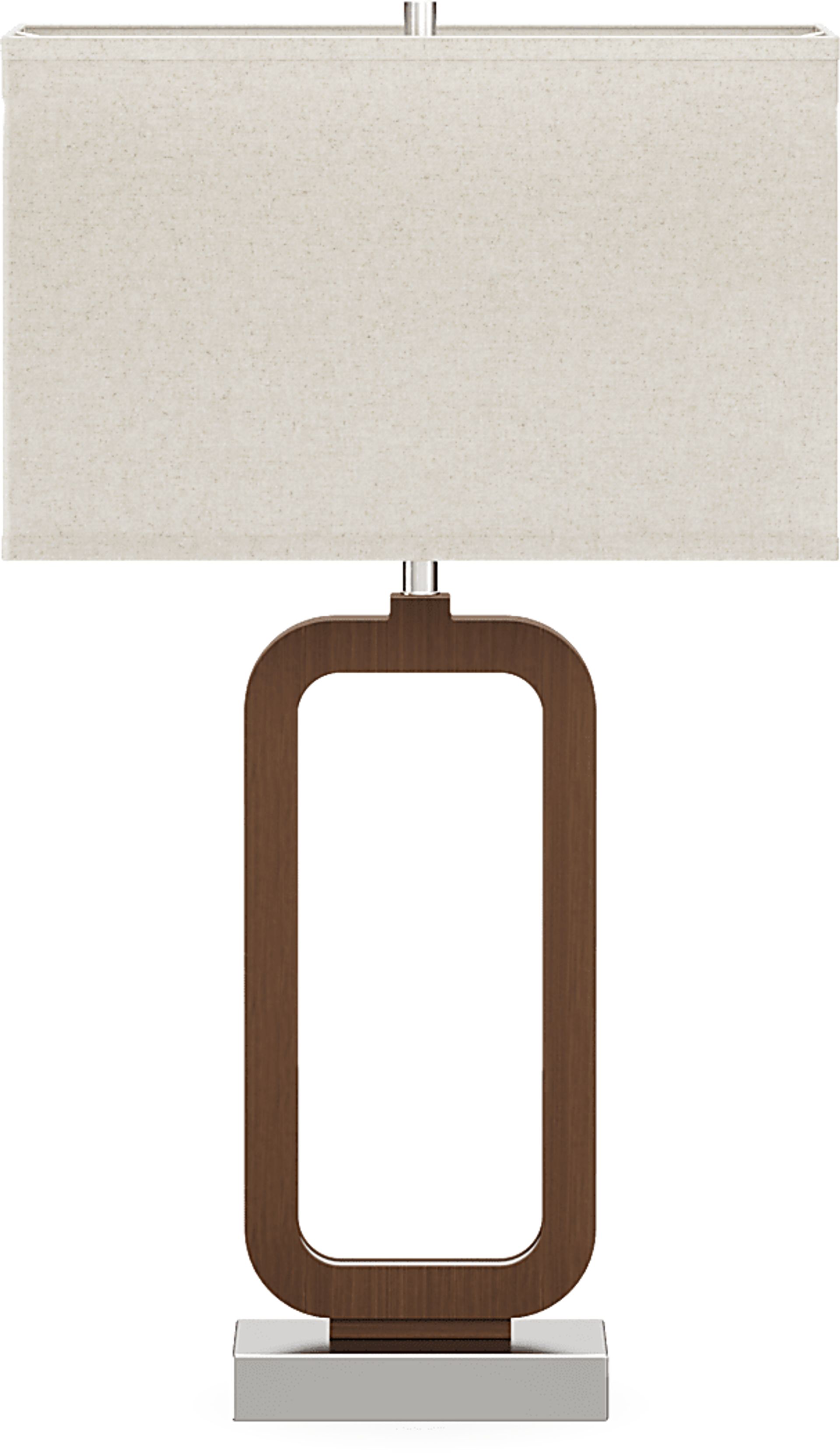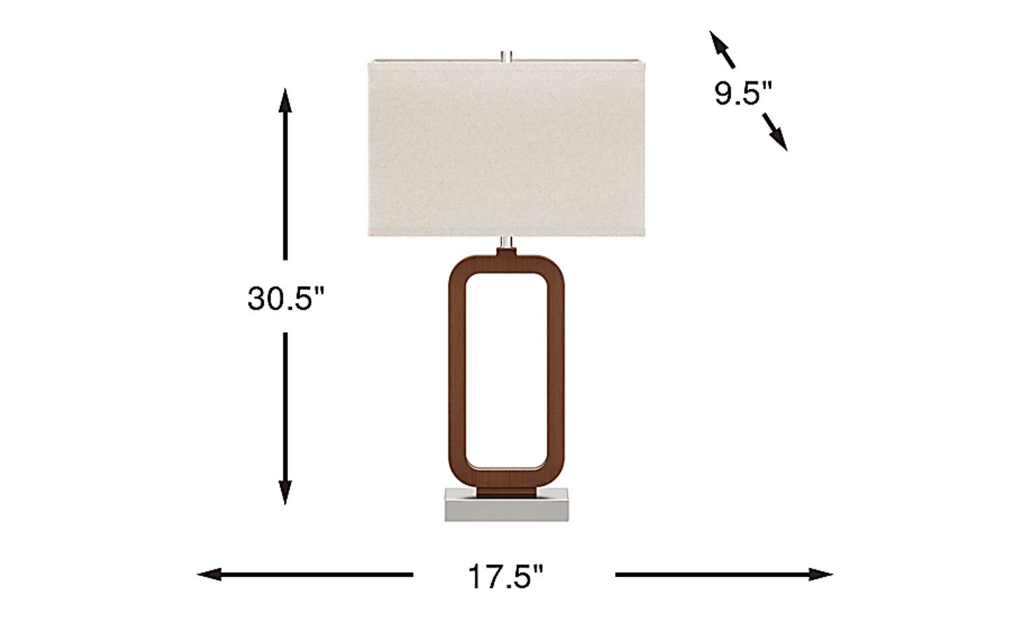 Brighten up your space with the contemporary flair of the Robin Lane lamp. Its walnut-finished body is designed with an open geometric shape. The off-white rectangular shade provides a neutral topper. Featuring a three-way switch, this lamp has a built in 6-watt LED nightlight and accommodates up to a 100-watt bulb (not included).