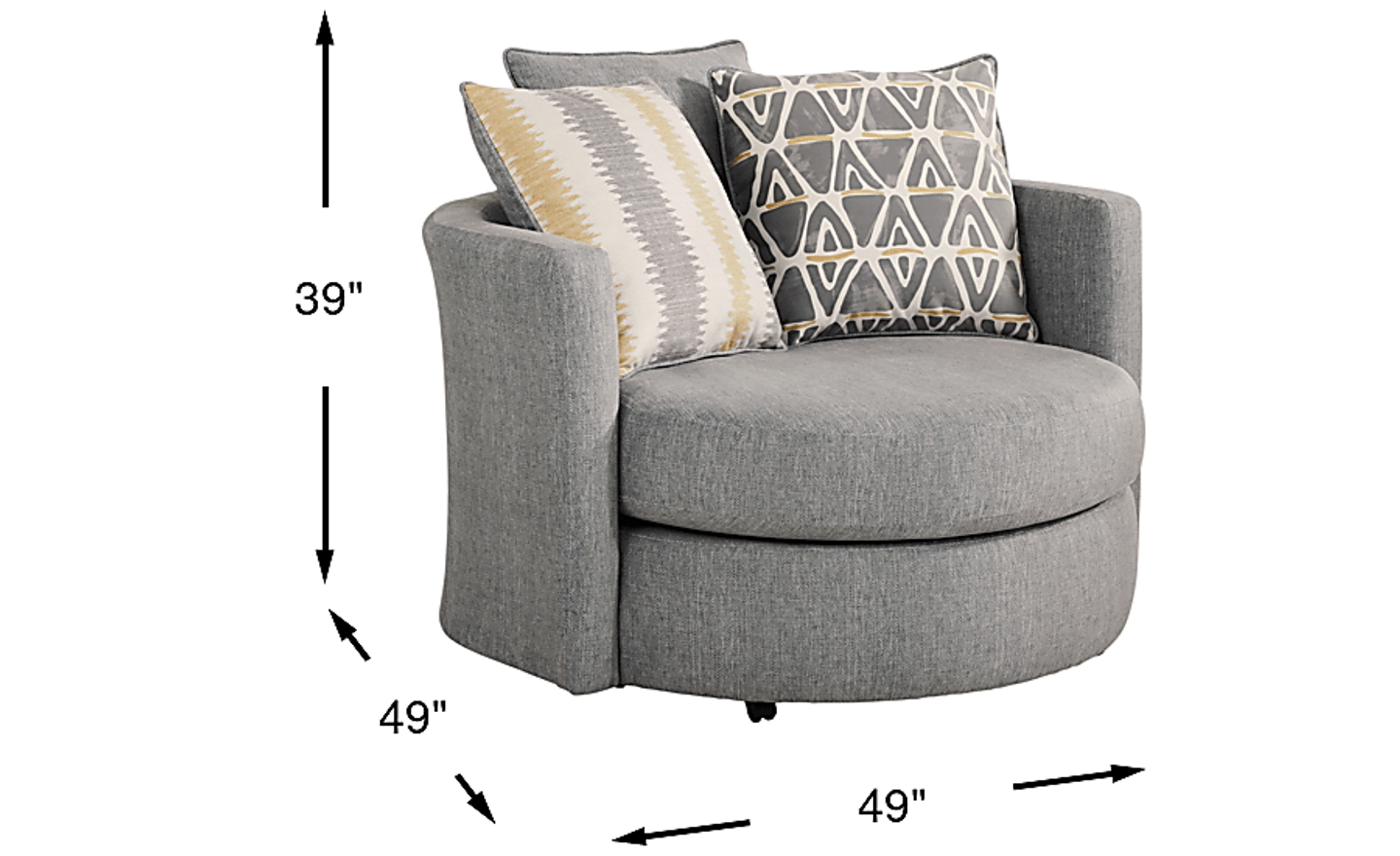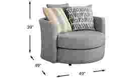 The Robson Street swivel chair combines cushioned comfort and contemporary good looks in one chic package. Upholstered in dark gray woven fabric, the chair's clean lines, comfortable seat cushion and swivel capability add a contrast in form to your living room. Upholstery: 100% Polyester